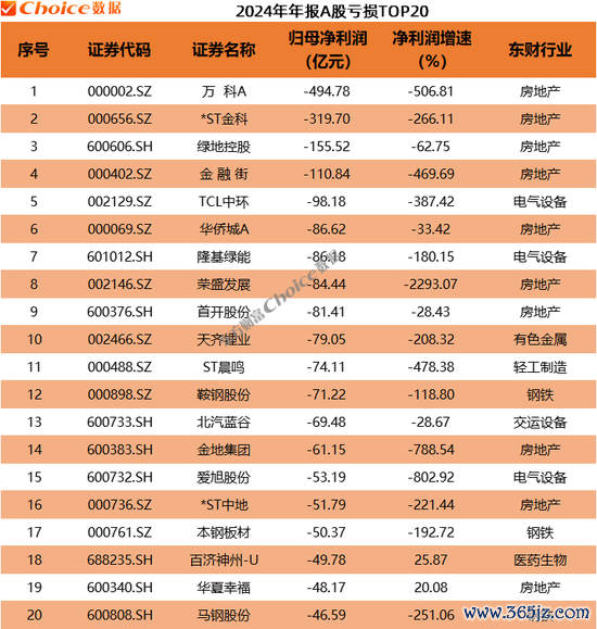 2024年,4家A股上市公司亏损超过100亿元,万科A亏损最多,高达494.78亿元。